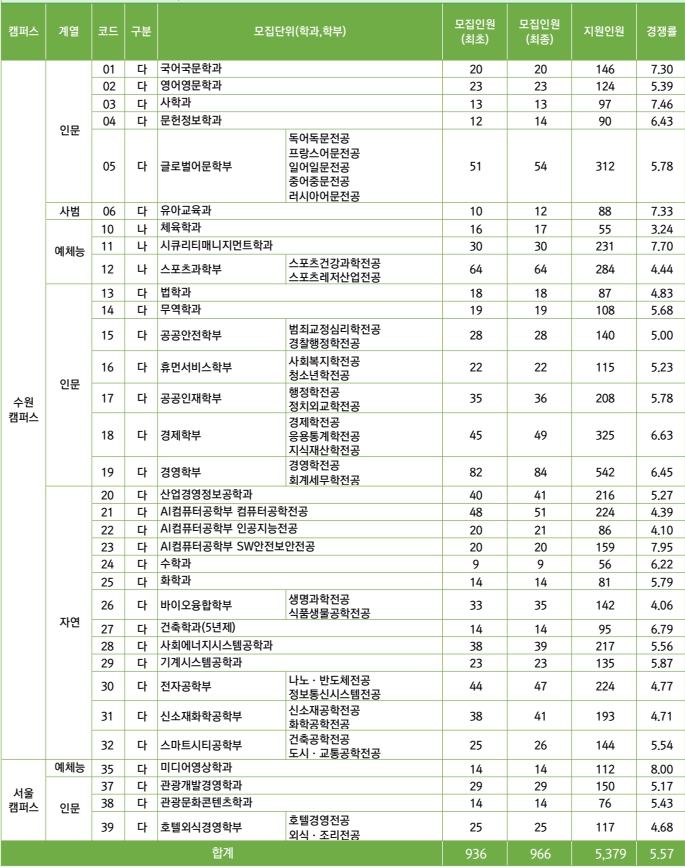 다른 것보다 캠퍼스가 수원캠퍼스와 서울캠퍼스가 있는데 전체에서 알아보도록 할게요.