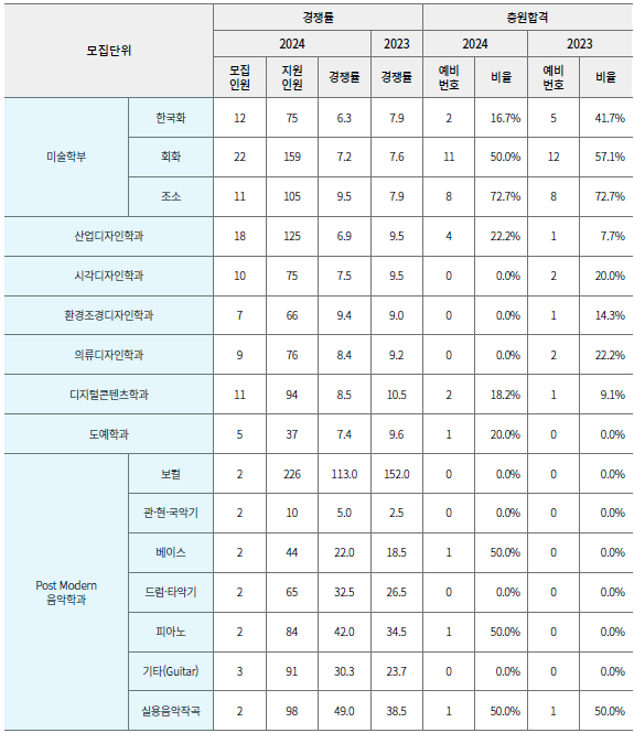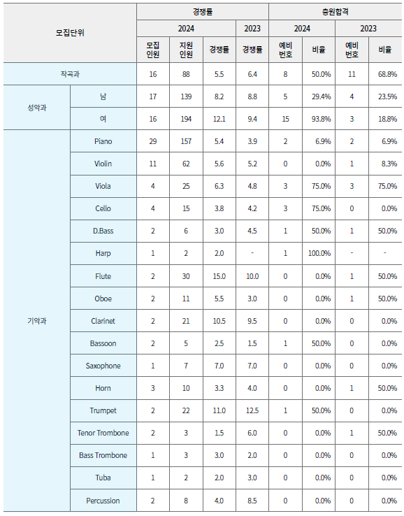 음대 쪽이나 미대 쪽이 있고, 각 군마다 지원하는 악기가 다른 만큼 이를 꼭 참고하셔야겠네요.