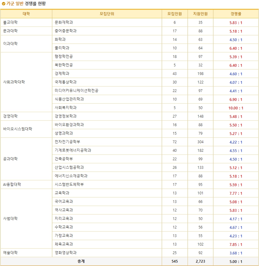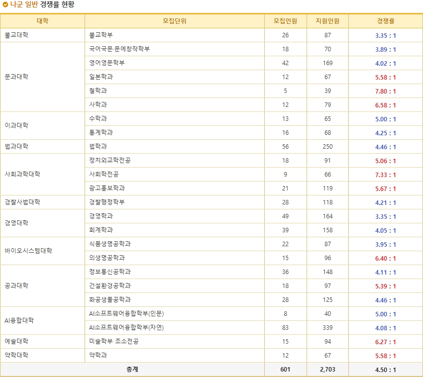 동국대 가군 일반전형 경쟁률을 알아볼 차례입니다.
