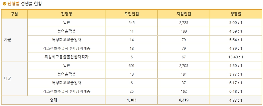 나군보다는 가군이 좀 더 경쟁률이 높았네요.