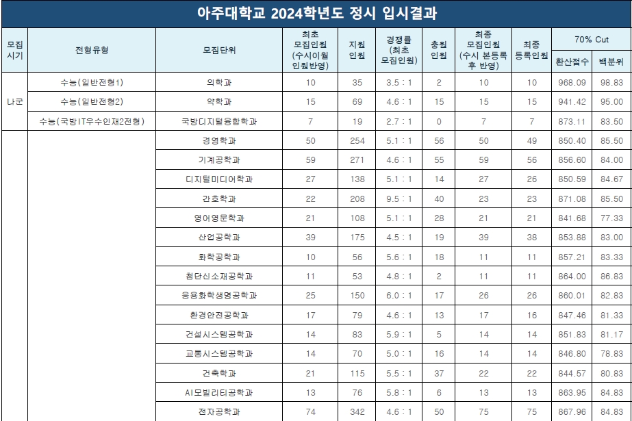 2. 2024 아주대 정시 입결 컷