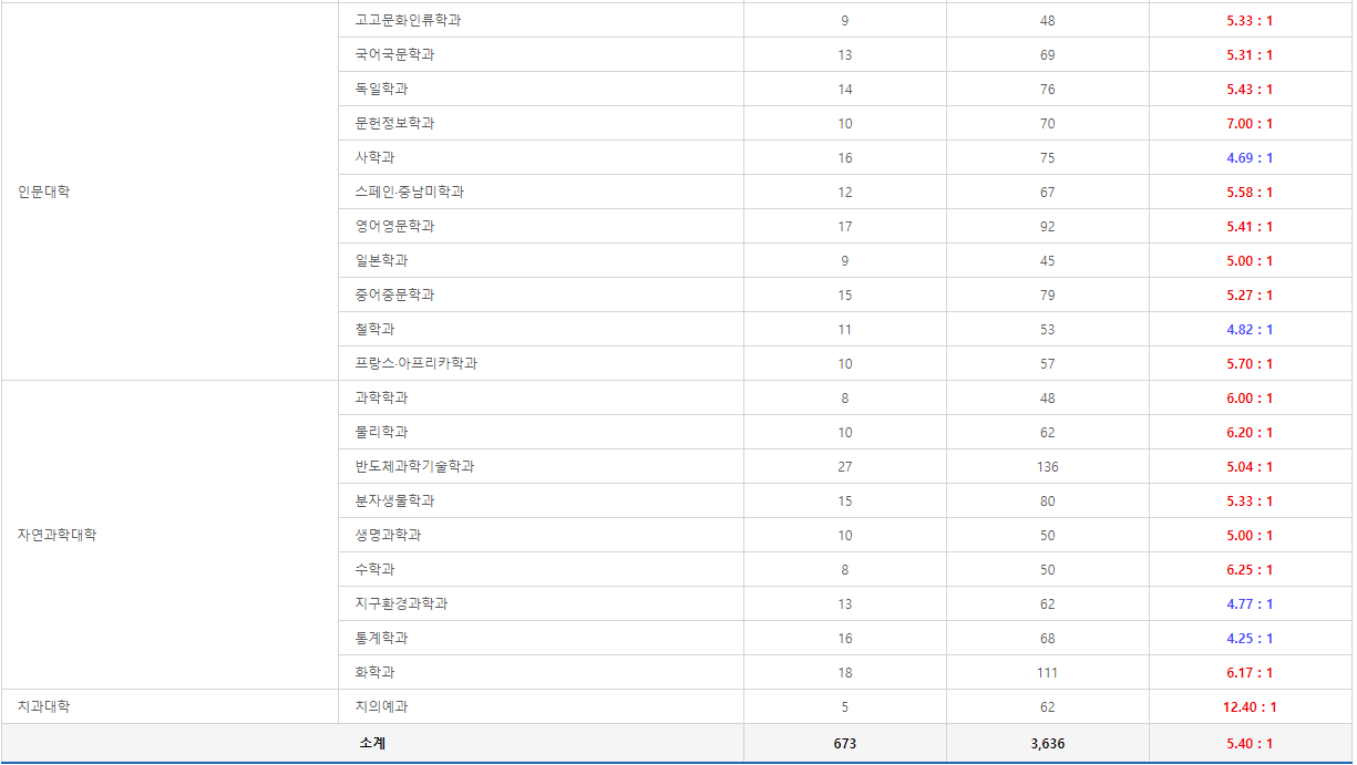 사범대학도 있고, 상경계열 쪽이 있다보니 경쟁률이 좀 더 높은 것 같습니다.