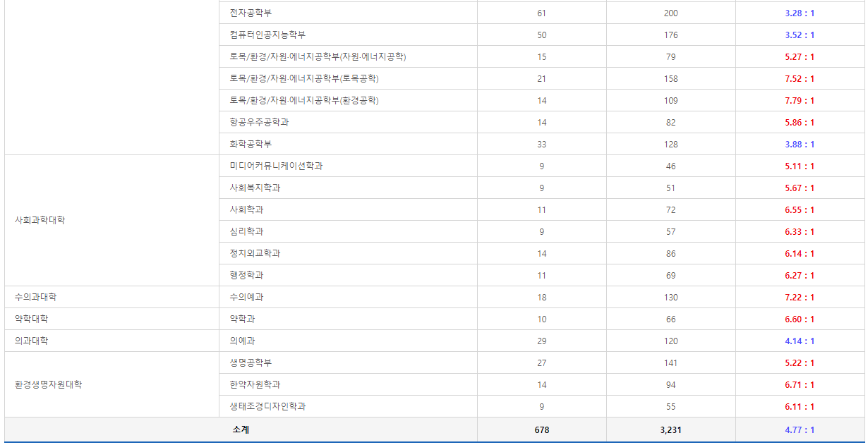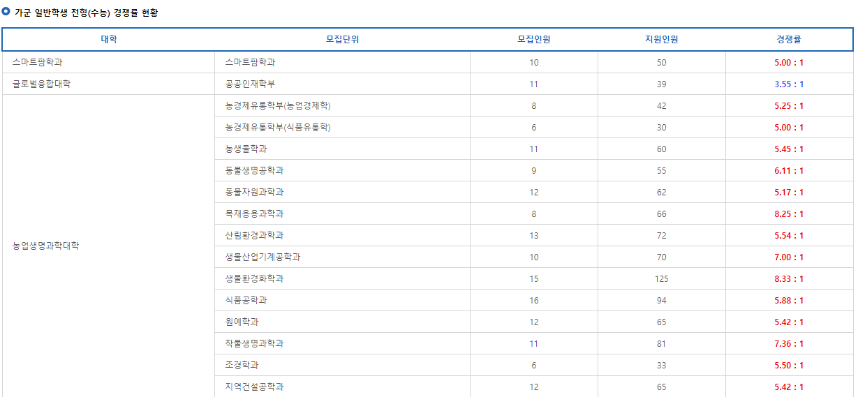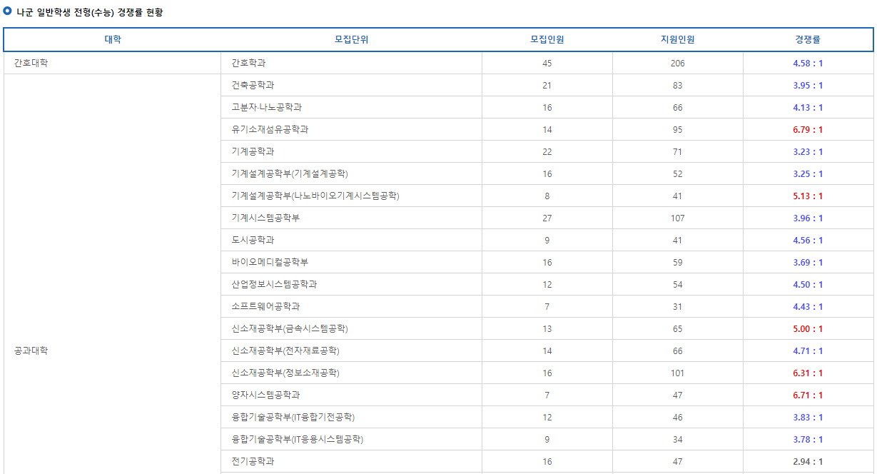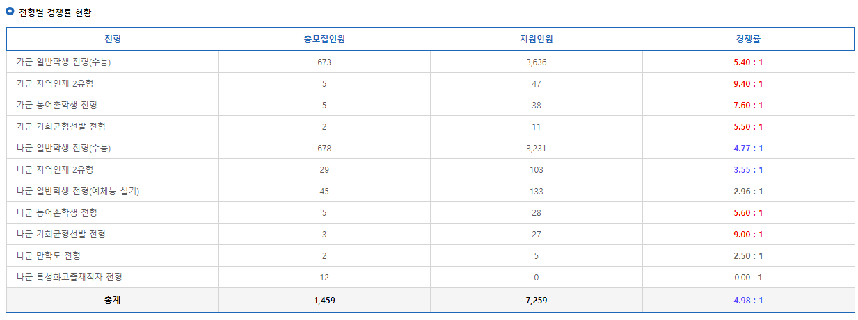 일단 저는 일반전형과 관련된 경쟁률만 살펴보려고 하는데요.