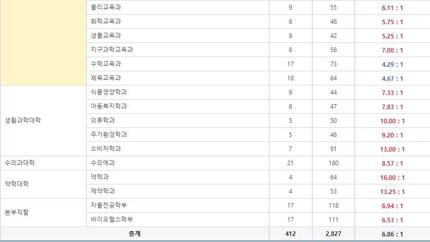 자연계열 쪽을 보면 약대를 제외하고 보면