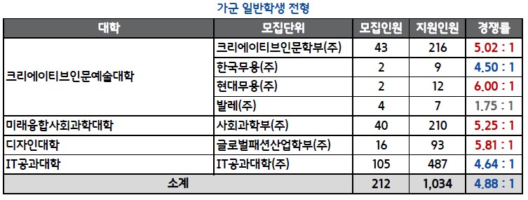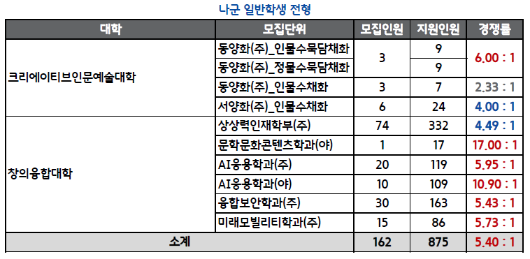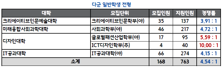 다군은 전체 평균 경쟁률이 4.54:1인데요.