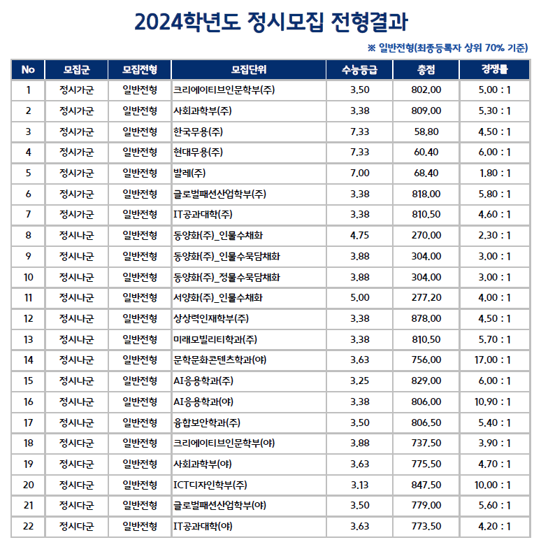 1. 2024 한성대 정시 전형별 경쟁률