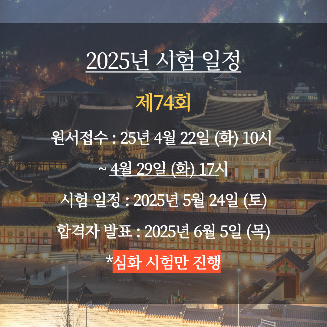 비고 : 74회에는 기본 급수 시험은 진행하지 않고 심화 급수 시험만 진행합니다.