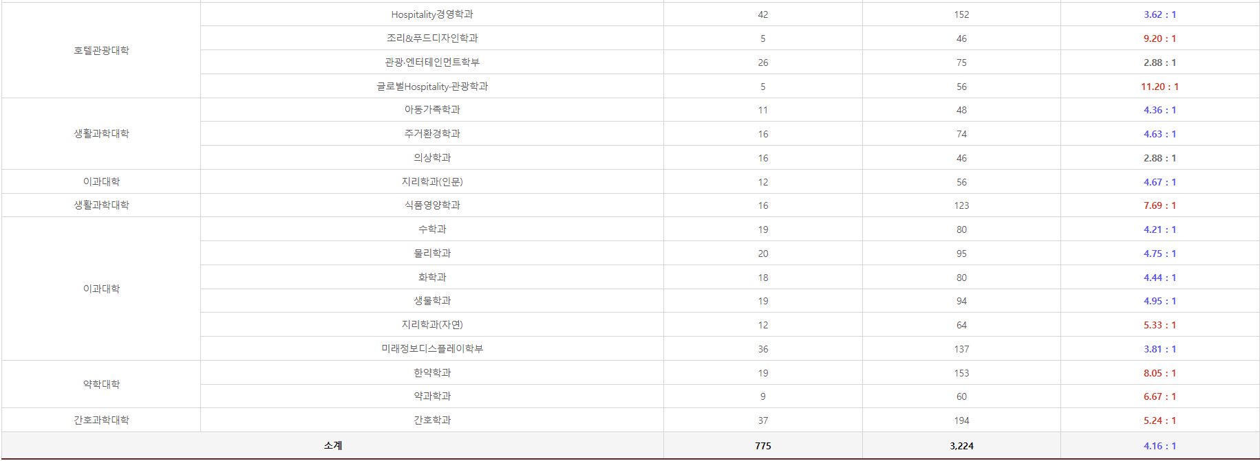 외국어 대학 쪽은 경쟁률이 상대적으로 높습니다.