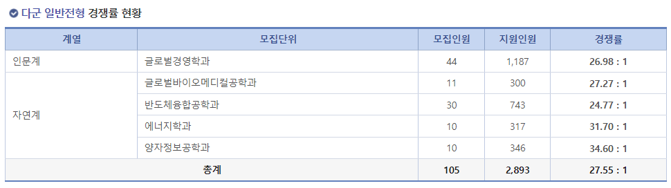 그래서 그런지 다군 평균 경쟁률은 27.55:1 입니다.