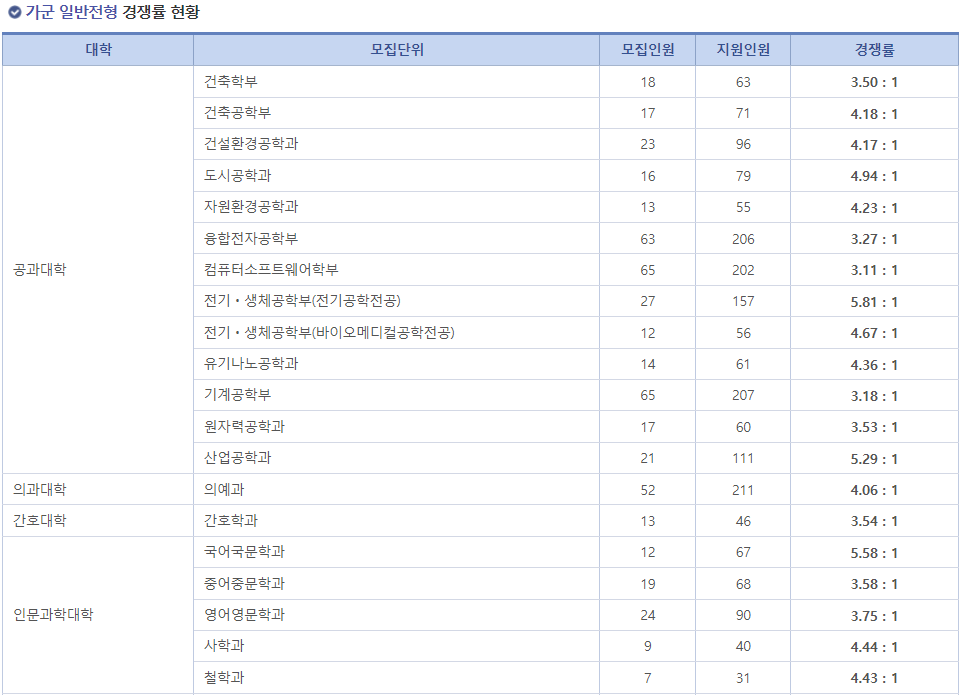 그렇다면 한양대 가군,나군,다군 일반전형 경쟁률 학과 TOP 3 학과를 알아보려고 하는데요.