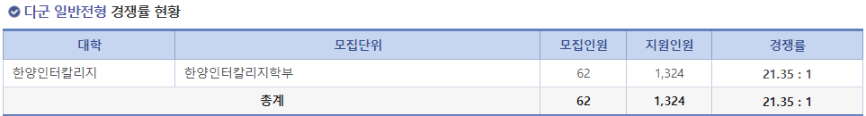 그렇다면 이번 한양대 정시 전형별 경쟁률은 어떻게 될까요?