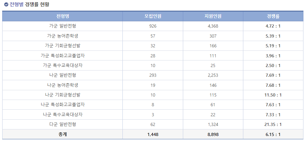 그래서 이번 2025학년도 정시 원서접수를 마치고 지원 경쟁률이 나왔습니다.